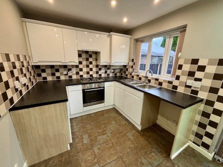 To the rear is the open plan kitchen/diner with a white gloss kitchen and new oven. Located below the stairs is a handy W.C with toilet and wash basin.